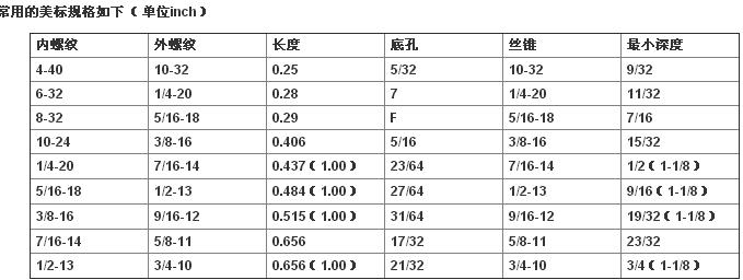 常用的公制规格: